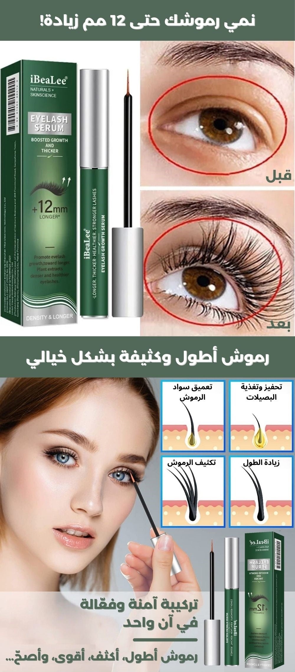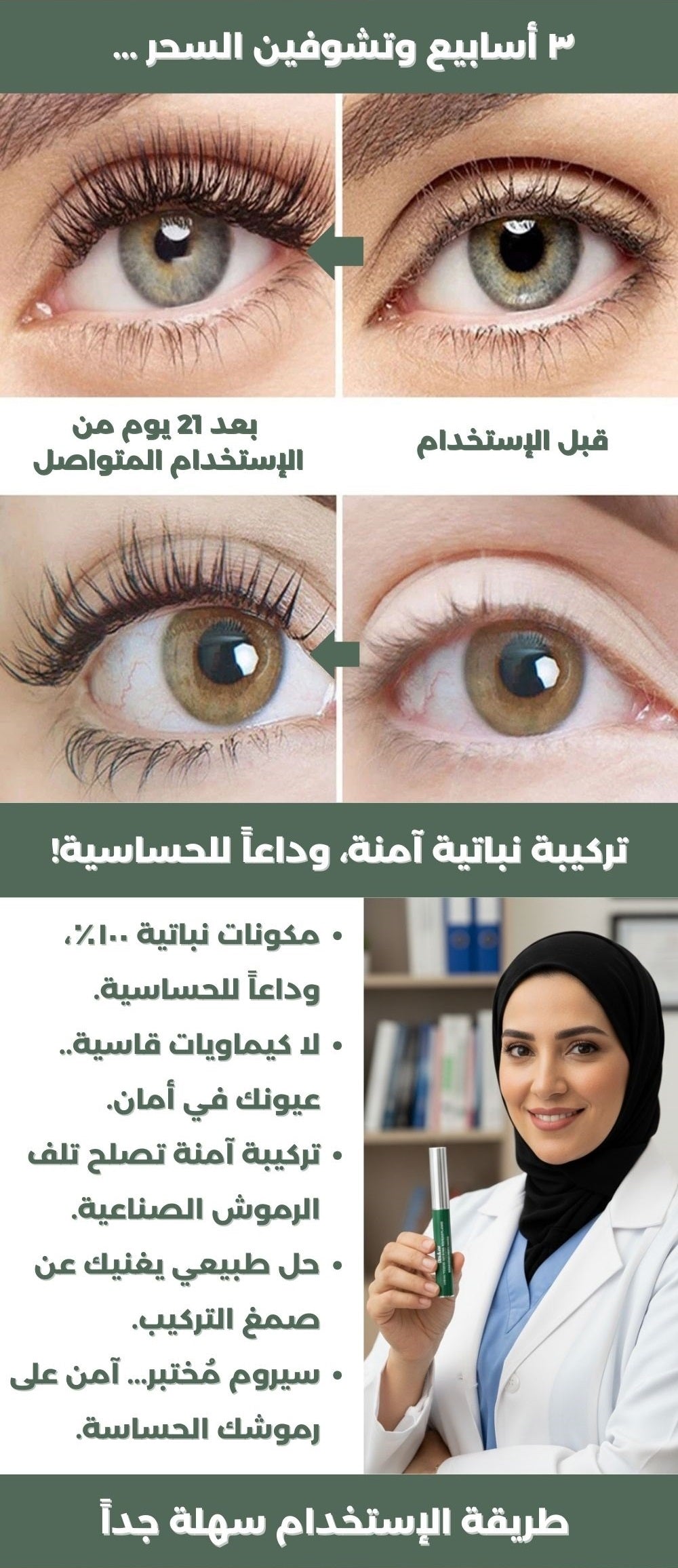 هذا هو الهدف! السيروم يعطيك رموش أطول وأكثف وأقوى بشكل طبيعي. يعني خلاص ما يحتاجين ترجعين لـ التركيب أو الماسكارا اليومية.