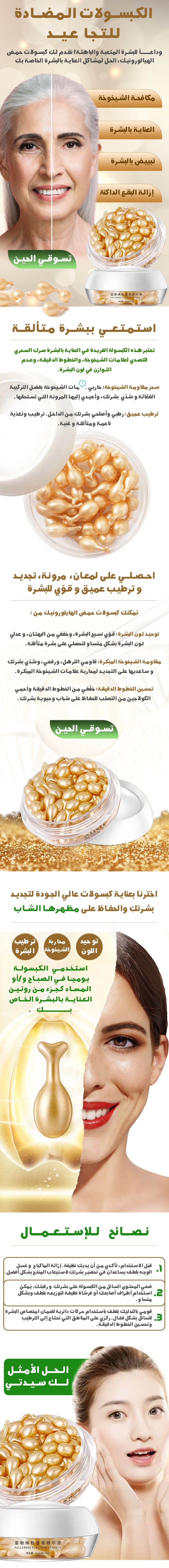 الإجابة: كبسولة واحدة كل ليلة قبل النوم على بشرة نظيفة. مخصصة للاستخدام الليلي فقط.