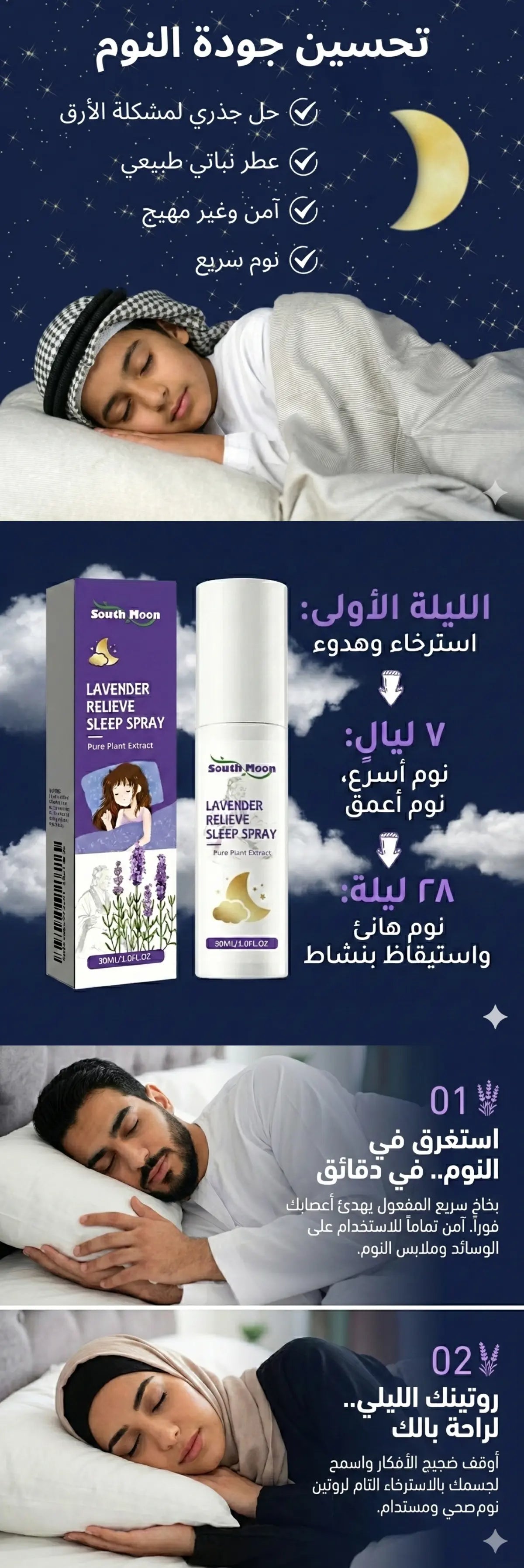 لا تقلق، فالبخاخ مصمم بتركيبة خفيفة وسريعة الجفاف تعتمد على مستخلصات طبيعية، مما يضمن عدم ترك أي بقع زيتية أو آثار على أغطية السرير أو الوسائد القطنية والحريرية.