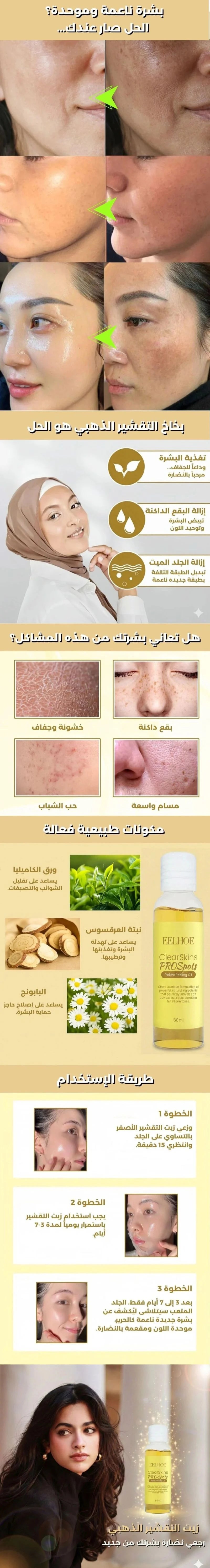 الإجابة: "التقشير يبدأ معاك خلال 3 لـ 7 أيام. المحافظة على النتيجة تعتمد على روتينك اليومي وحماية بشرتك من الشمس."